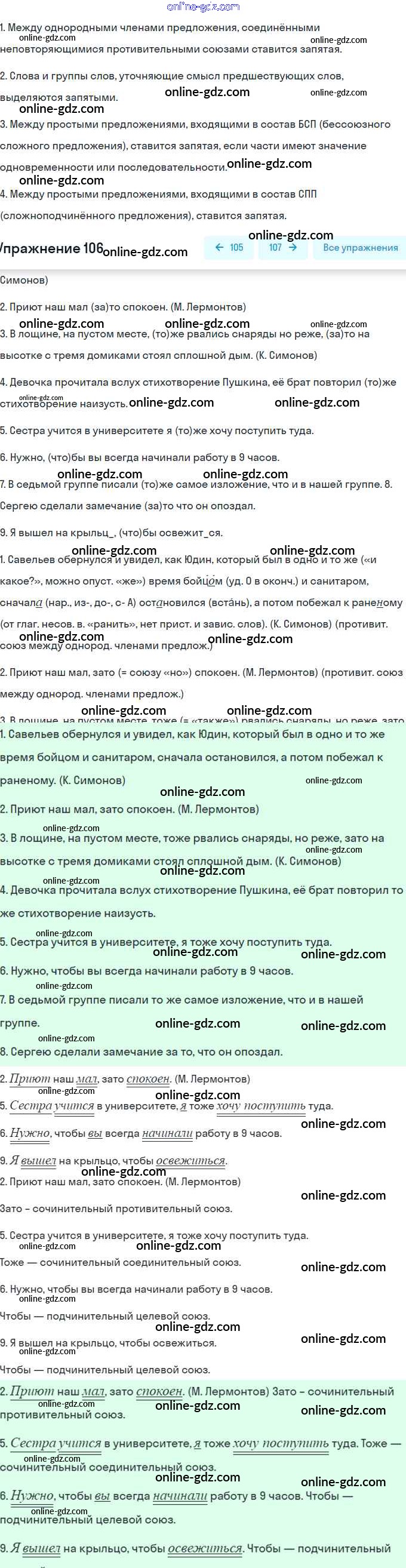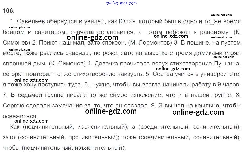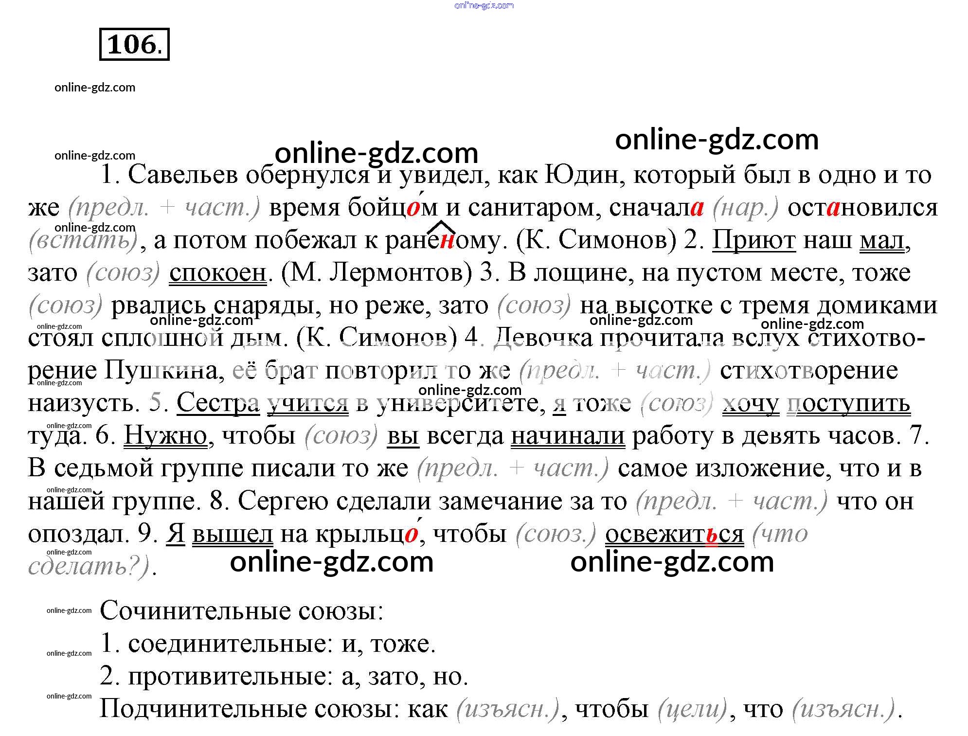 Готовые домашние задания по Русскому языку за 7 класс Рабочая тетрадь Ефремова, Баранова УМК 2017 - Упражнения 106