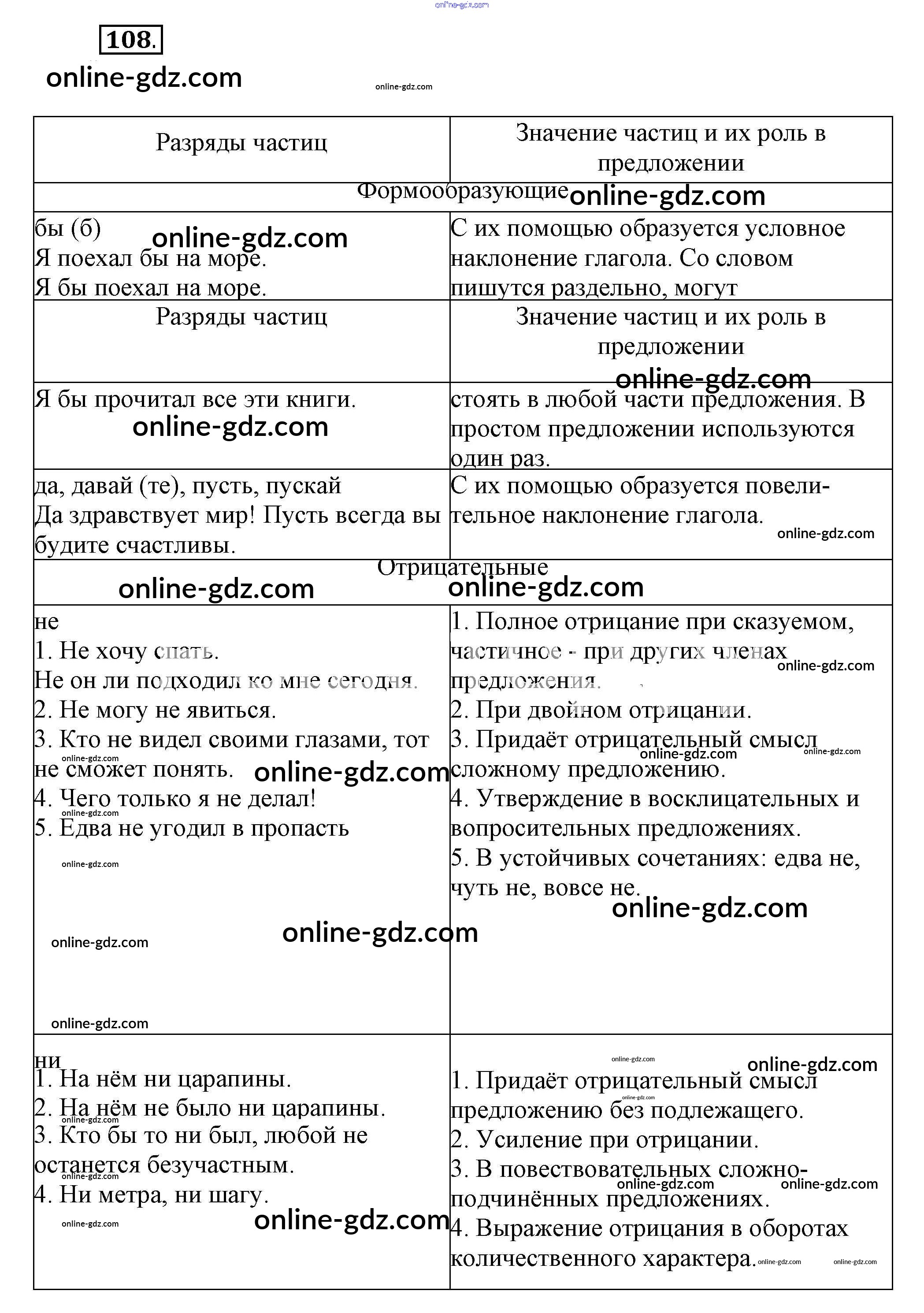 Готовые домашние задания по Русскому языку за 7 класс Рабочая тетрадь Ефремова, Баранова УМК 2017 - Упражнения 108