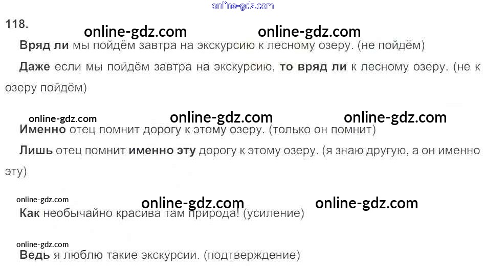 Готовые домашние задания по Русскому языку за 7 класс Рабочая тетрадь Ефремова, Баранова УМК 2017 - Упражнения 118