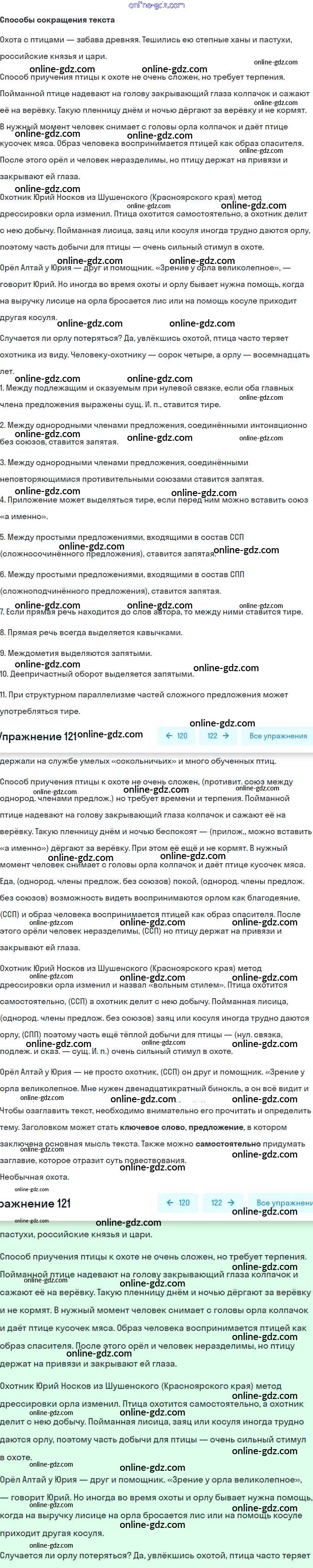 Готовые домашние задания по Русскому языку за 7 класс Рабочая тетрадь Ефремова, Баранова УМК 2017 - Упражнения 121