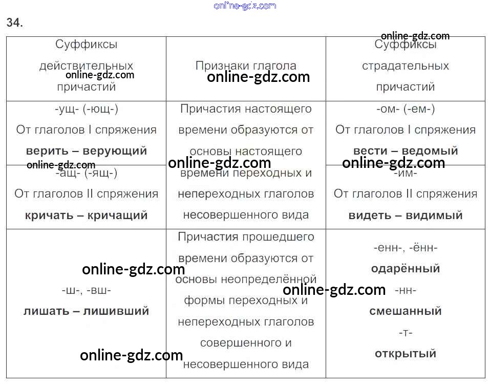 Готовые домашние задания по Русскому языку за 7 класс Рабочая тетрадь Ефремова, Баранова УМК 2017 - Упражнения 34