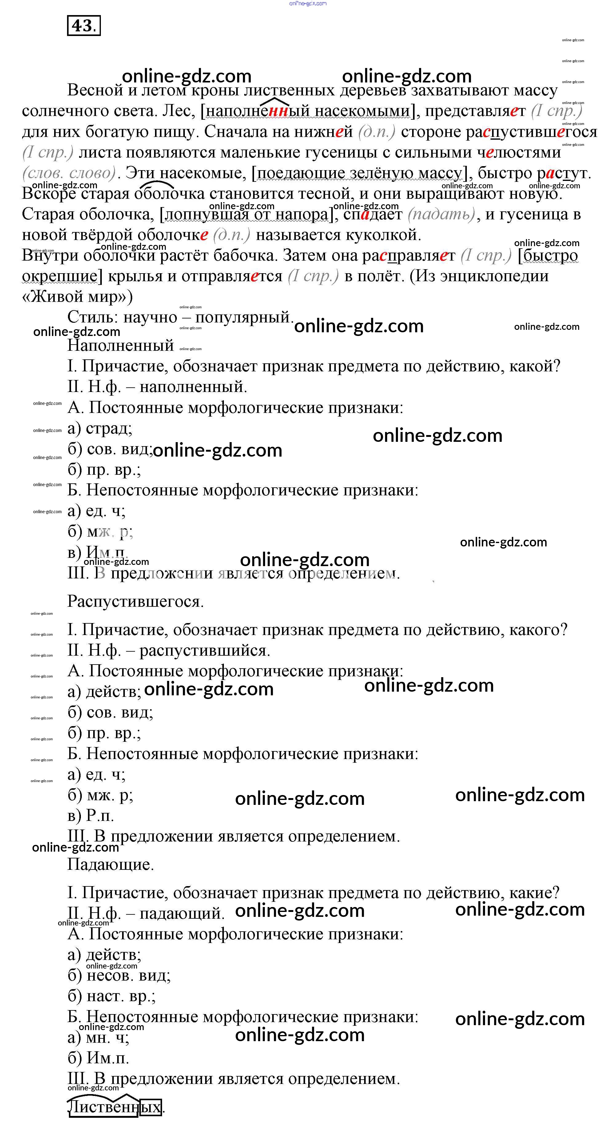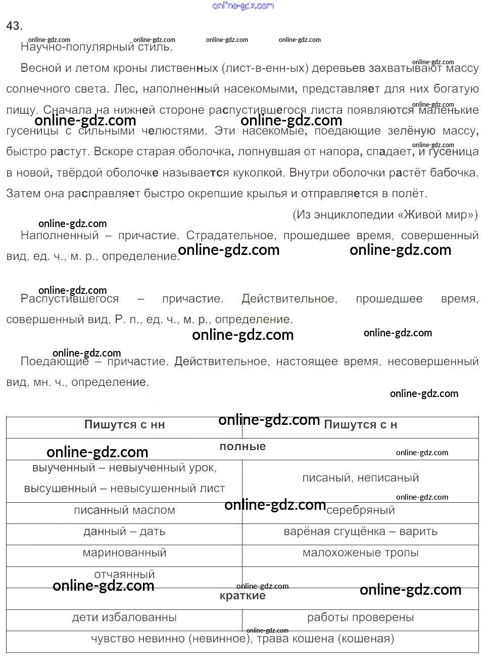 Готовые домашние задания по Русскому языку за 7 класс Рабочая тетрадь Ефремова, Баранова УМК 2017 - Упражнения 43