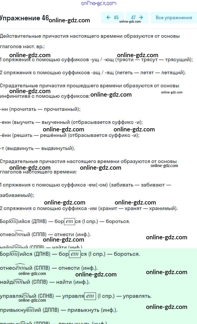 Готовые домашние задания по Русскому языку за 7 класс Рабочая тетрадь Ефремова, Баранова УМК 2017 - Упражнения 46