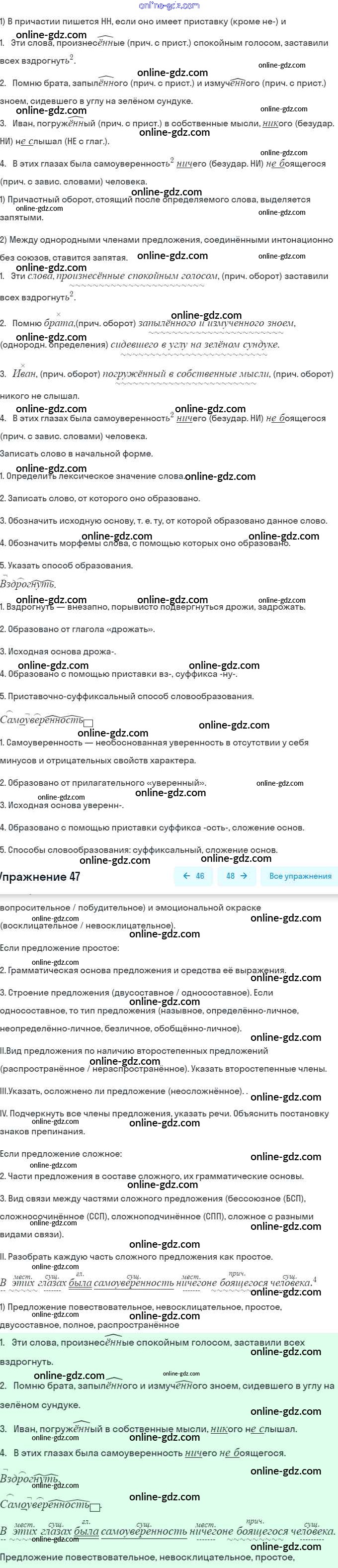 Готовые домашние задания по Русскому языку за 7 класс Рабочая тетрадь Ефремова, Баранова УМК 2017 - Упражнения 47