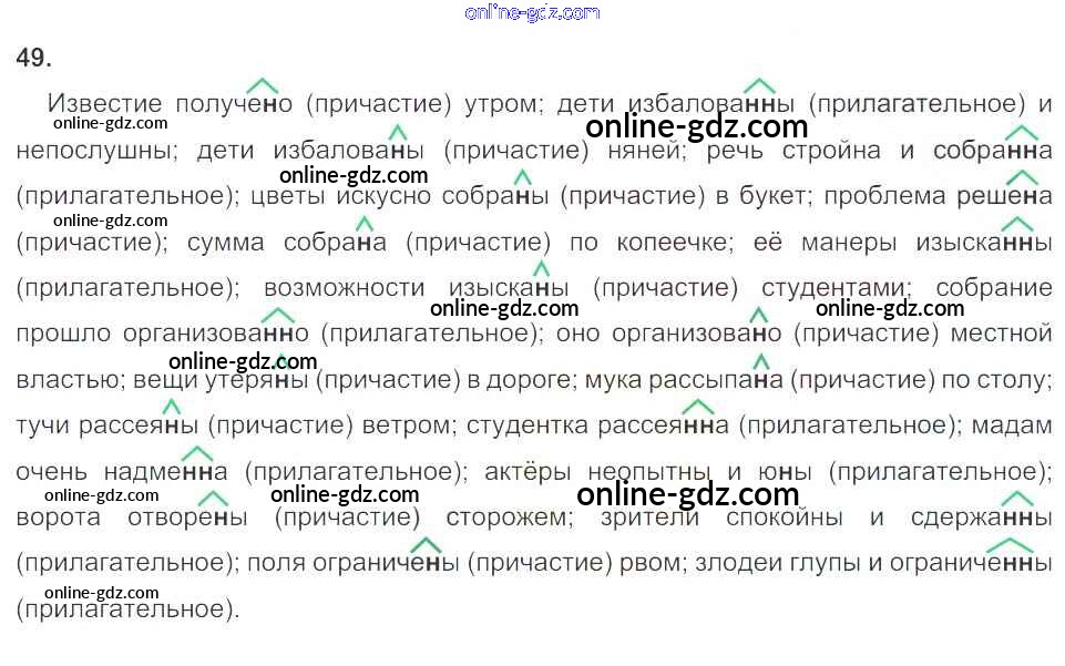 Готовые домашние задания по Русскому языку за 7 класс Рабочая тетрадь Ефремова, Баранова УМК 2017 - Упражнения 49