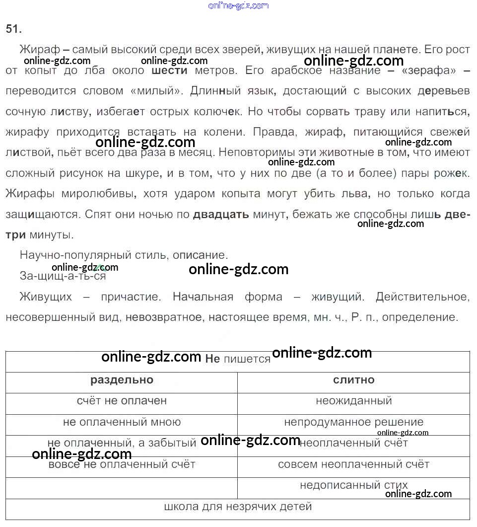 Готовые домашние задания по Русскому языку за 7 класс Рабочая тетрадь Ефремова, Баранова УМК 2017 - Упражнения 51