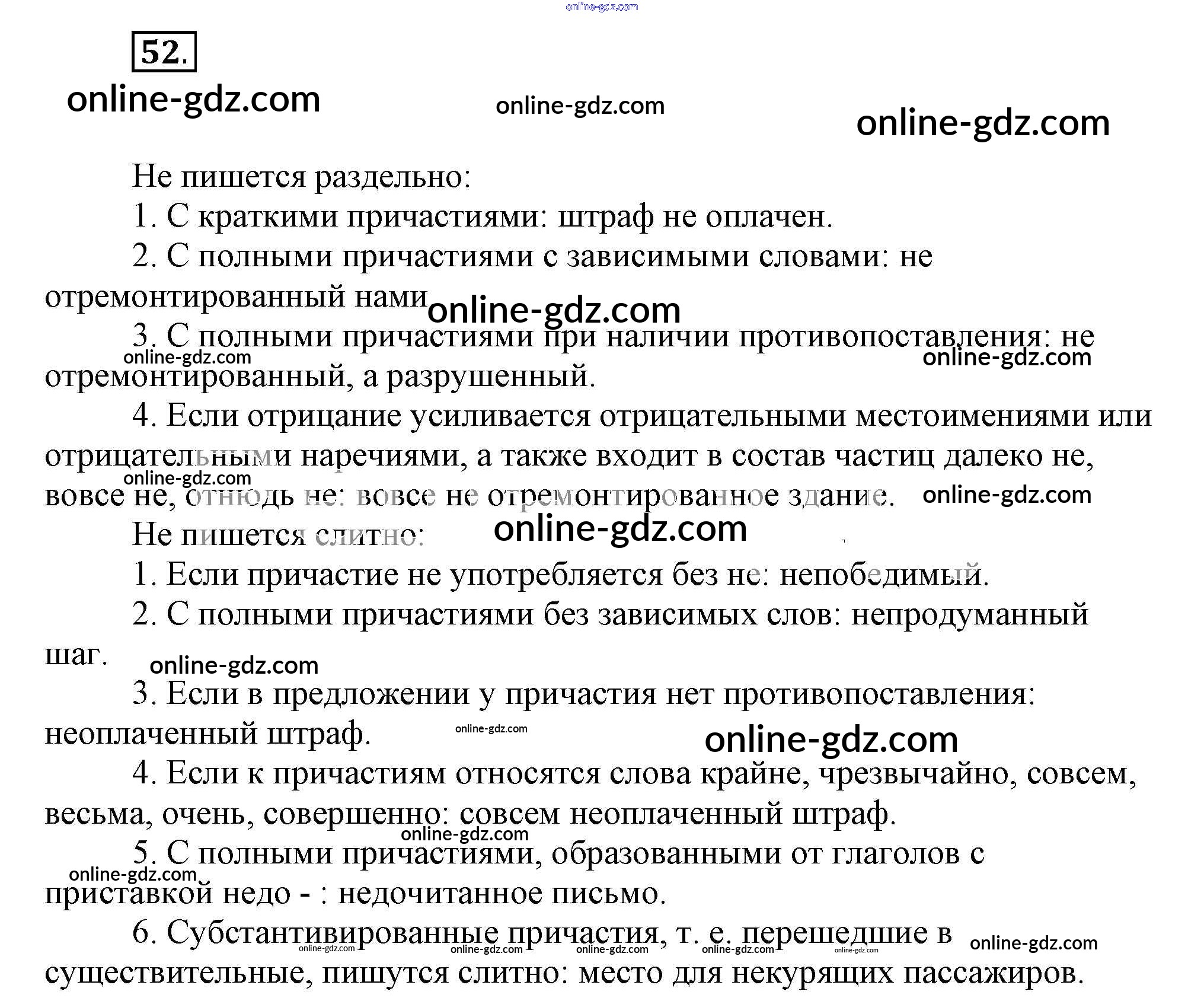Готовые домашние задания по Русскому языку за 7 класс Рабочая тетрадь Ефремова, Баранова УМК 2017 - Упражнения 52