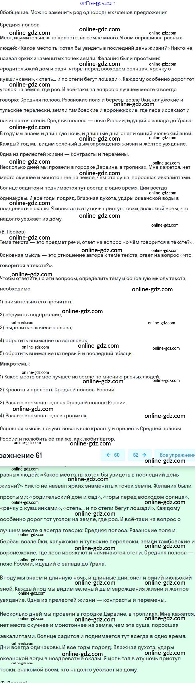 Готовые домашние задания по Русскому языку за 7 класс Рабочая тетрадь Ефремова, Баранова УМК 2017 - Упражнения 61