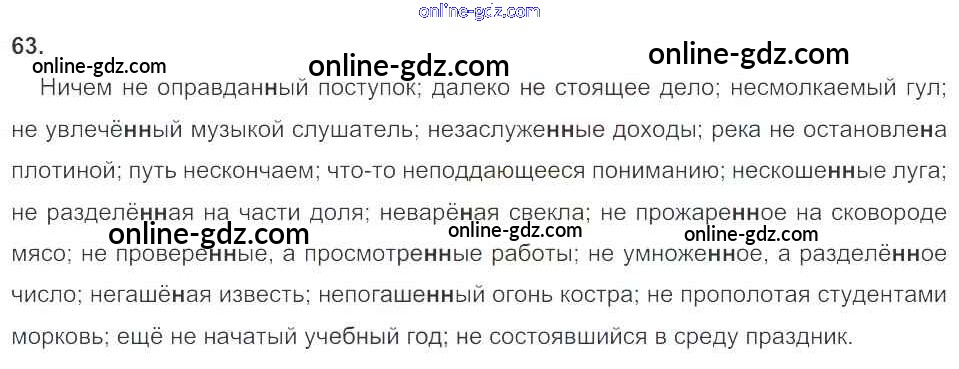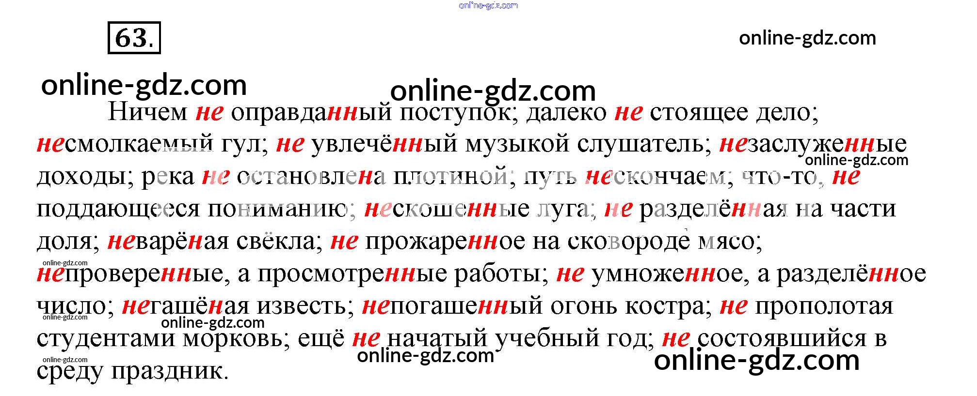 Готовые домашние задания по Русскому языку за 7 класс Рабочая тетрадь Ефремова, Баранова УМК 2017 - Упражнения 63