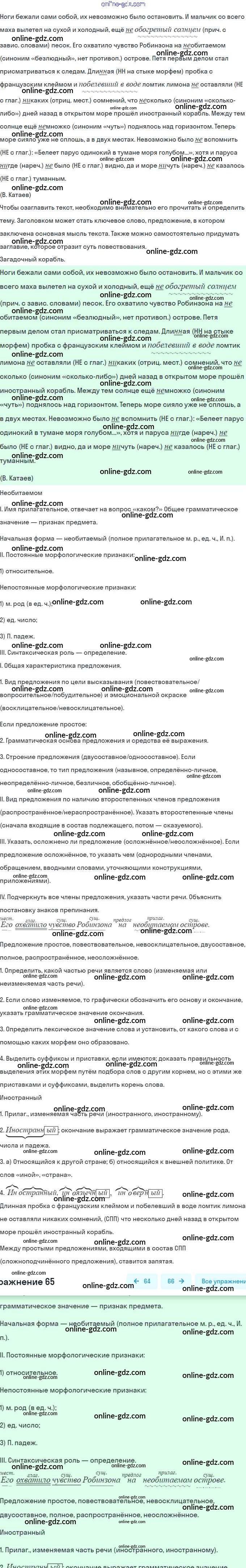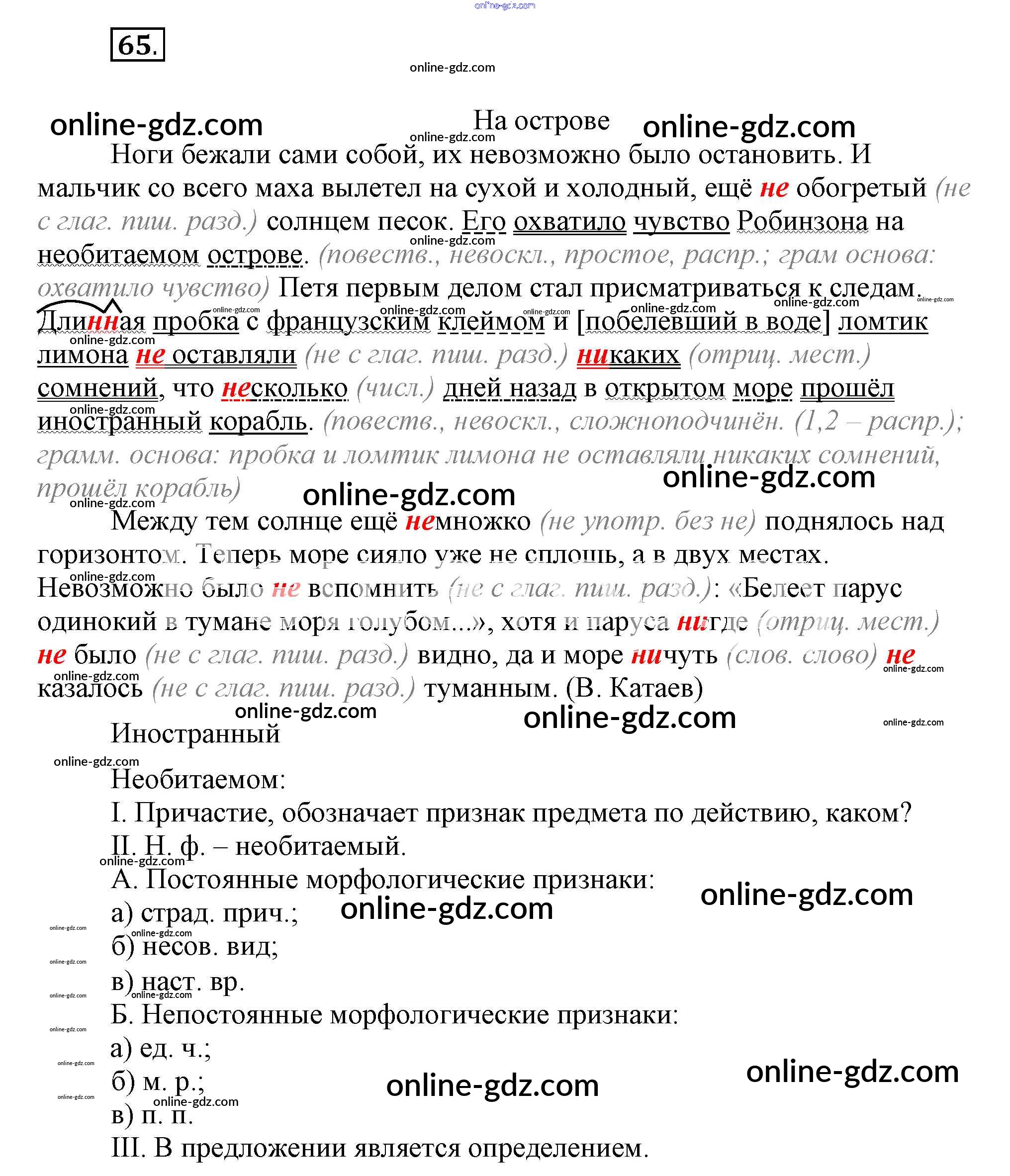 Готовые домашние задания по Русскому языку за 7 класс Рабочая тетрадь Ефремова, Баранова УМК 2017 - Упражнения 65
