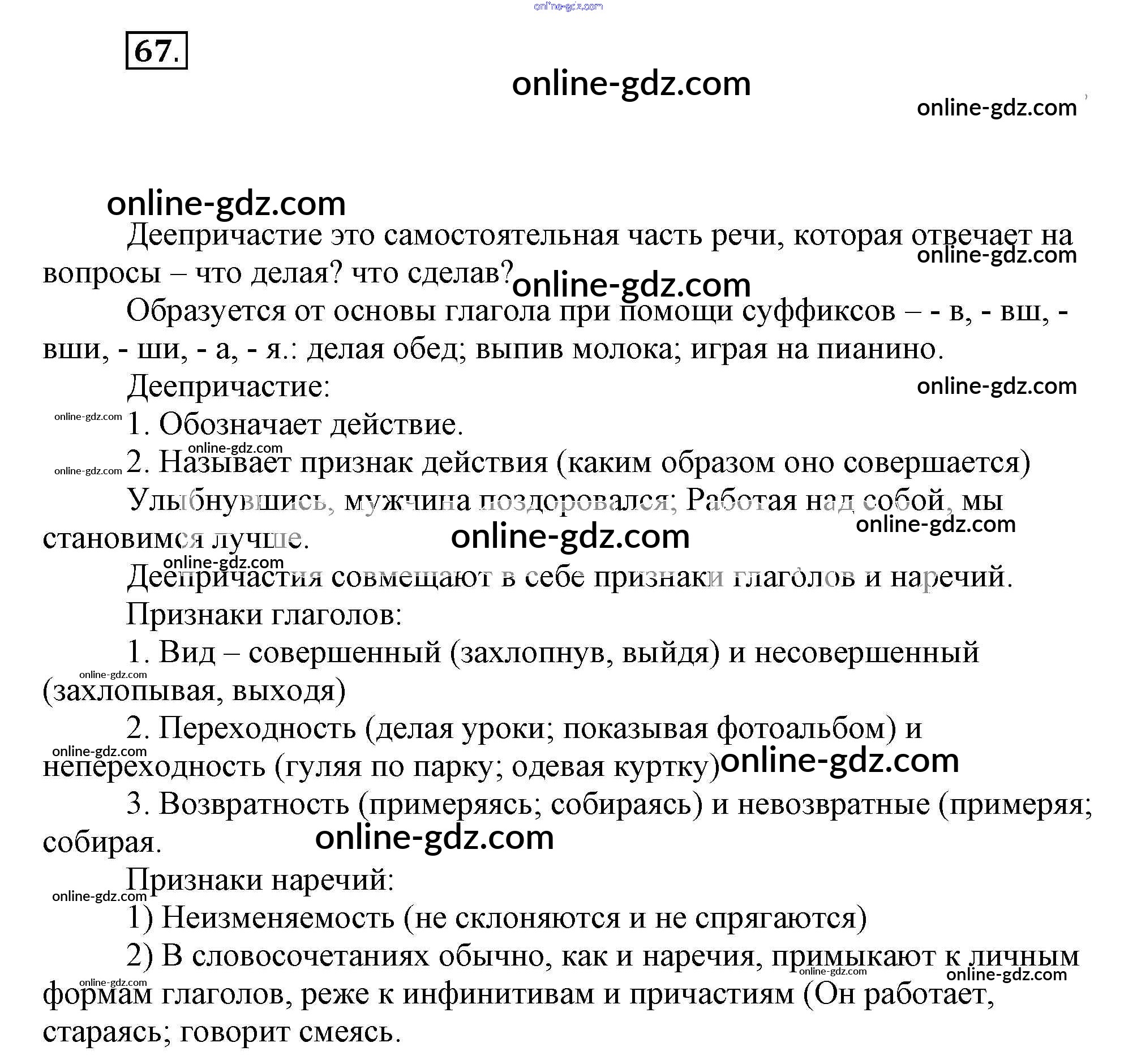 Готовые домашние задания по Русскому языку за 7 класс Рабочая тетрадь Ефремова, Баранова УМК 2017 - Упражнения 67