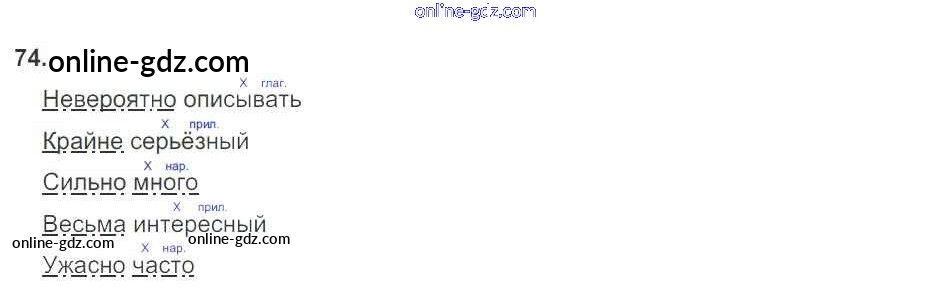 Готовые домашние задания по Русскому языку за 7 класс Рабочая тетрадь Ефремова, Баранова УМК 2017 - Упражнения 74