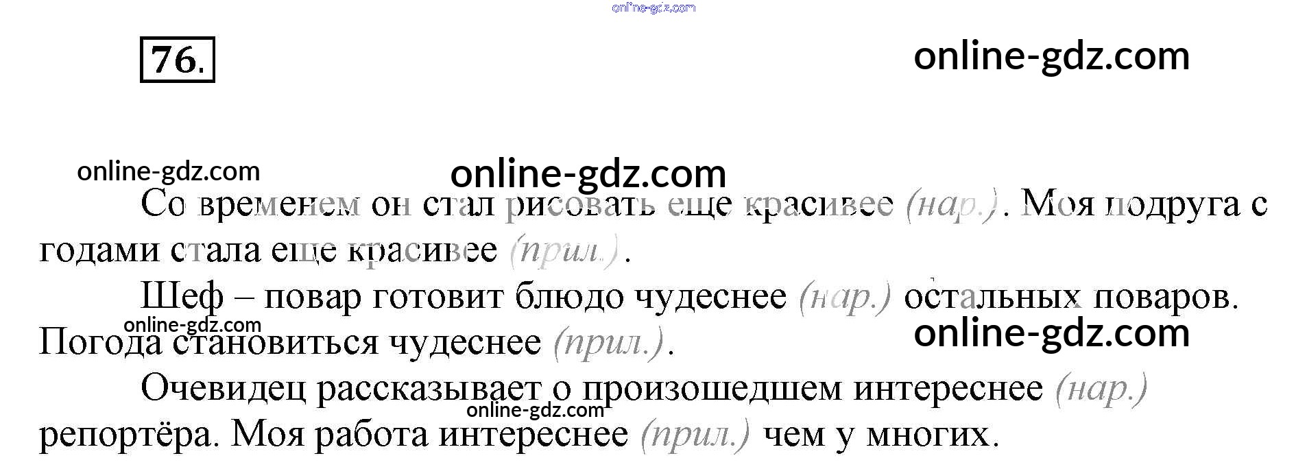 Готовые домашние задания по Русскому языку за 7 класс Рабочая тетрадь Ефремова, Баранова УМК 2017 - Упражнения 76