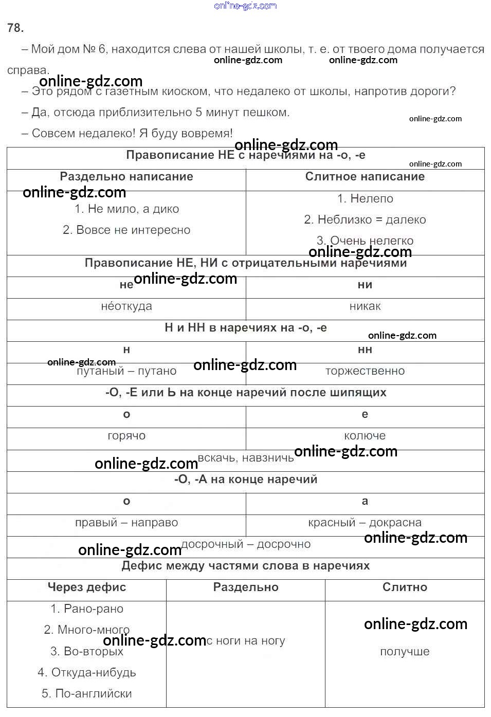 Готовые домашние задания по Русскому языку за 7 класс Рабочая тетрадь Ефремова, Баранова УМК 2017 - Упражнения 78