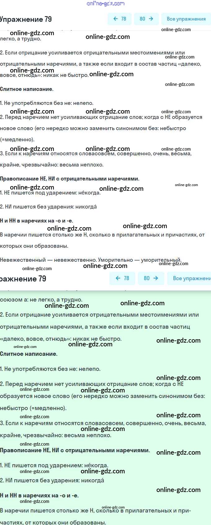 Готовые домашние задания по Русскому языку за 7 класс Рабочая тетрадь Ефремова, Баранова УМК 2017 - Упражнения 79