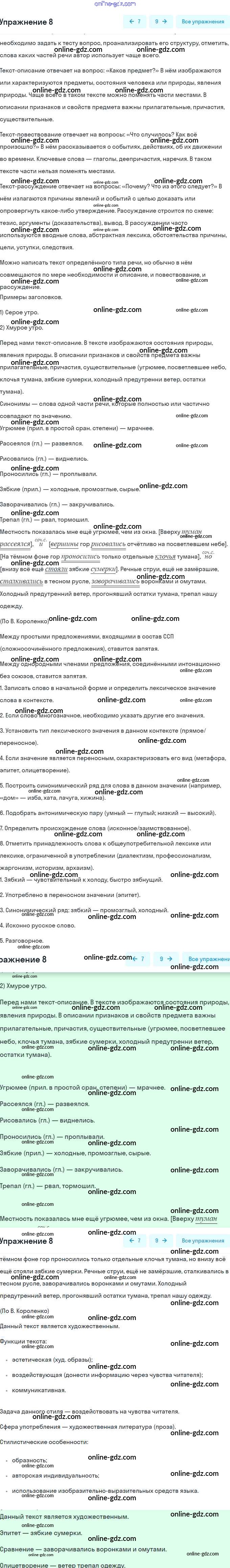 Готовые домашние задания по Русскому языку за 7 класс Рабочая тетрадь Ефремова, Баранова УМК 2017 - Упражнения 8