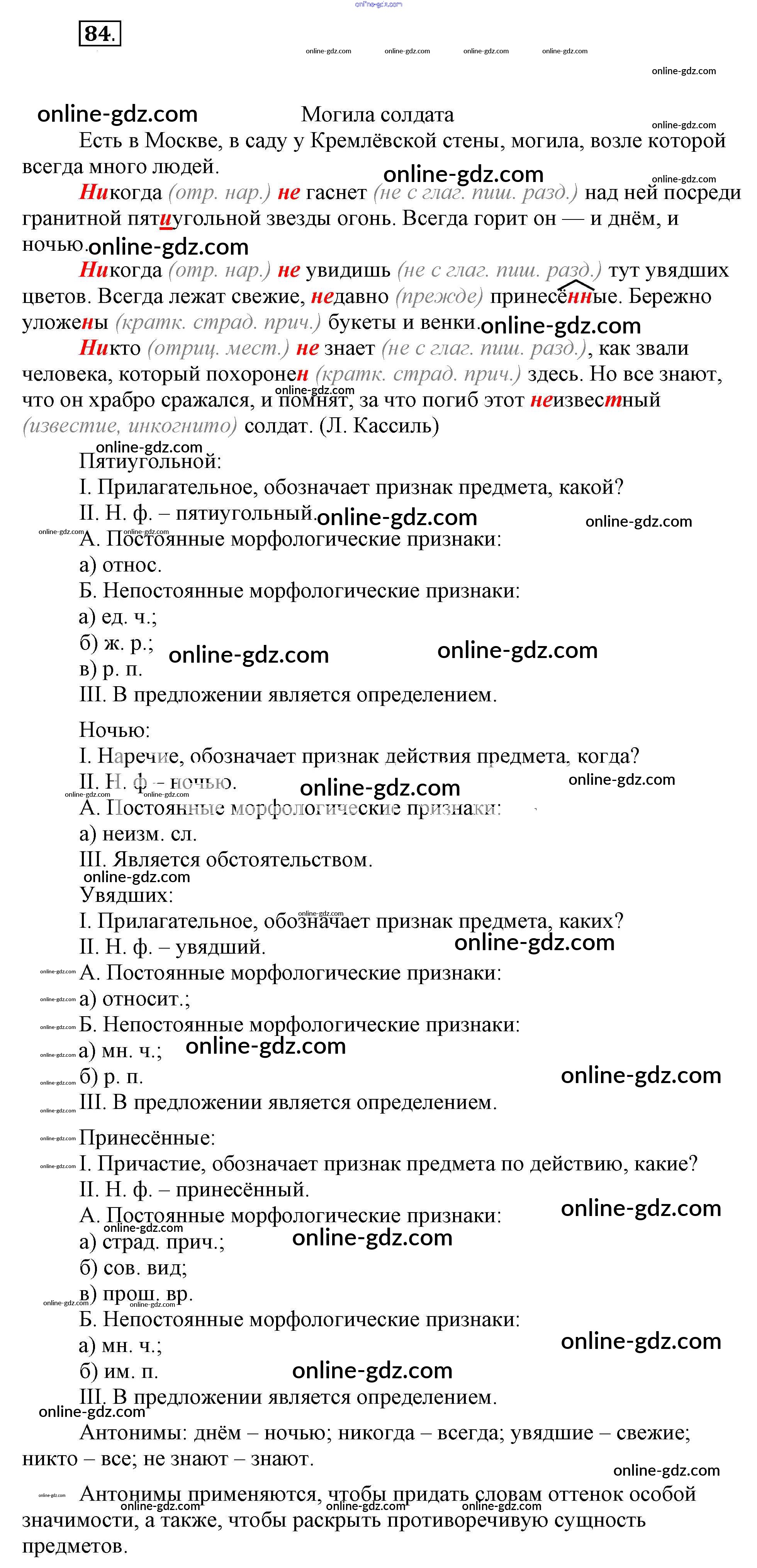 Готовые домашние задания по Русскому языку за 7 класс Рабочая тетрадь Ефремова, Баранова УМК 2017 - Упражнения 84