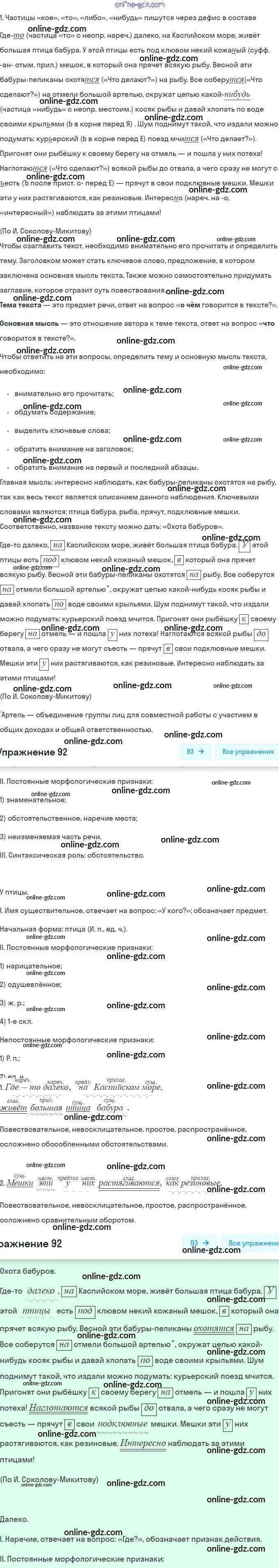 Готовые домашние задания по Русскому языку за 7 класс Рабочая тетрадь Ефремова, Баранова УМК 2017 - Упражнения 92