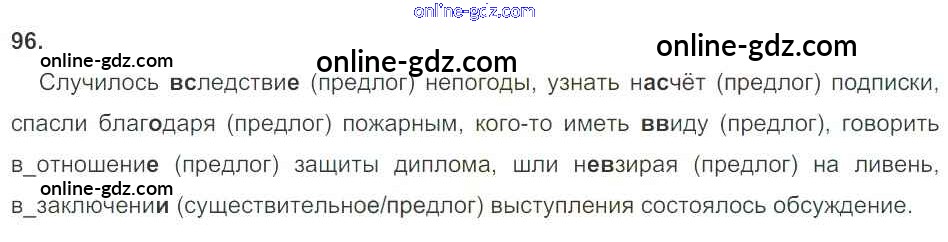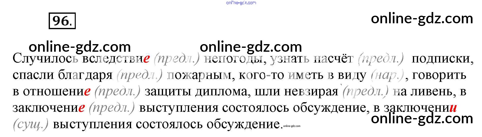 Готовые домашние задания по Русскому языку за 7 класс Рабочая тетрадь Ефремова, Баранова УМК 2017 - Упражнения 96