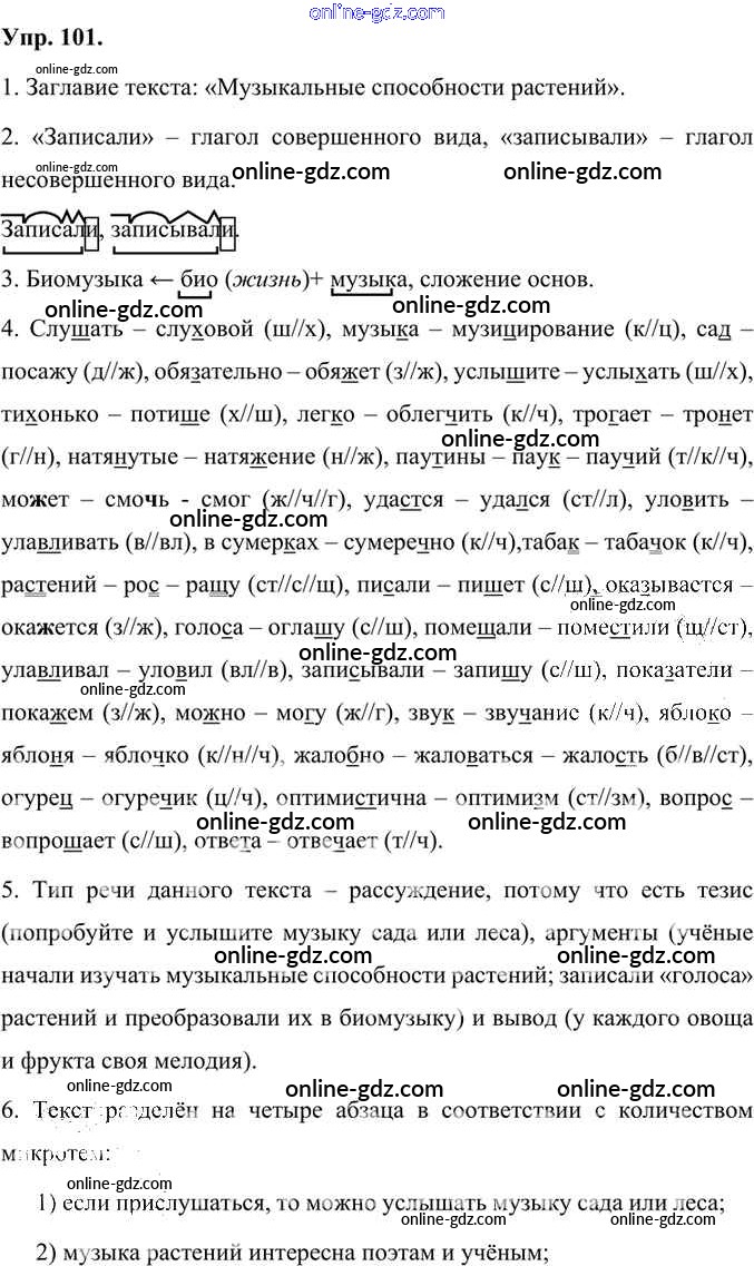 Готовые домашние задания по Русскому языку за 7 класс Учебник Быстрова, Кибирева Инновационная школа 2019 - Упражнения Часть 1 101