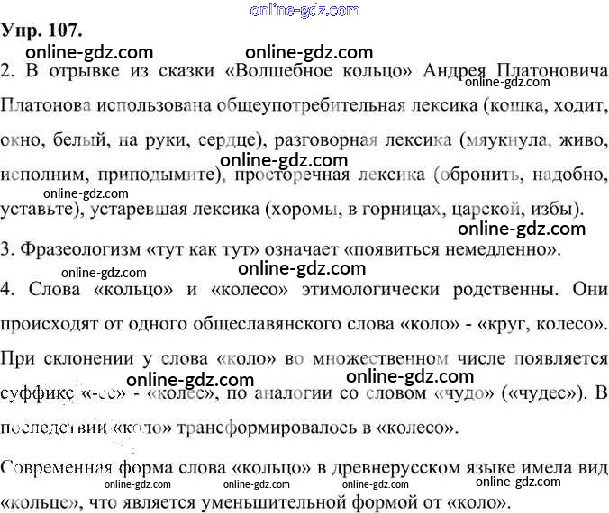 Готовые домашние задания по Русскому языку за 7 класс Учебник Быстрова, Кибирева Инновационная школа 2019 - Упражнения Часть 1 107