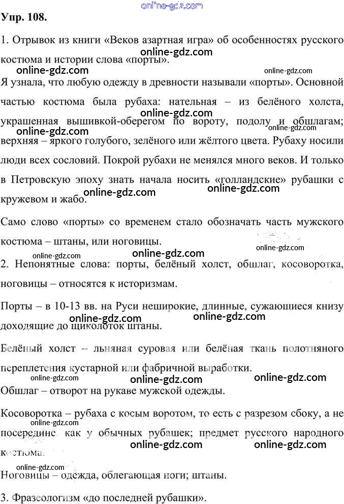 Готовые домашние задания по Русскому языку за 7 класс Учебник Быстрова, Кибирева Инновационная школа 2019 - Упражнения Часть 1 108