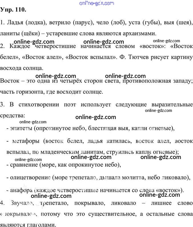 Готовые домашние задания по Русскому языку за 7 класс Учебник Быстрова, Кибирева Инновационная школа 2019 - Упражнения Часть 1 110