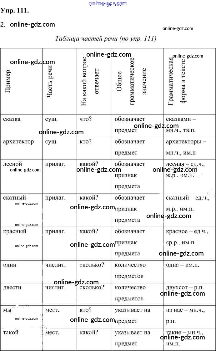 Готовые домашние задания по Русскому языку за 7 класс Учебник Быстрова, Кибирева Инновационная школа 2019 - Упражнения Часть 1 111