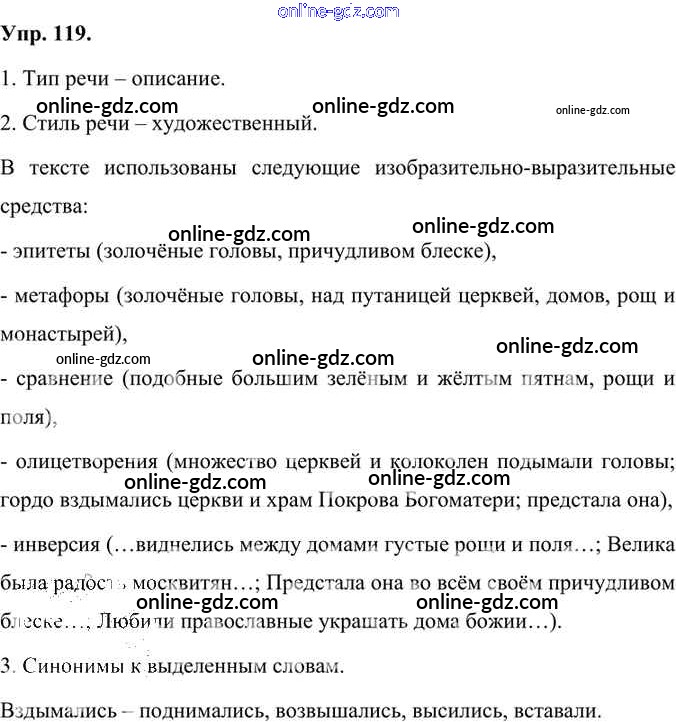 Готовые домашние задания по Русскому языку за 7 класс Учебник Быстрова, Кибирева Инновационная школа 2019 - Упражнения Часть 1 119