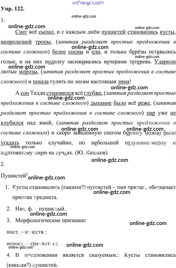 Готовые домашние задания по Русскому языку за 7 класс Учебник Быстрова, Кибирева Инновационная школа 2019 - Упражнения Часть 1 122