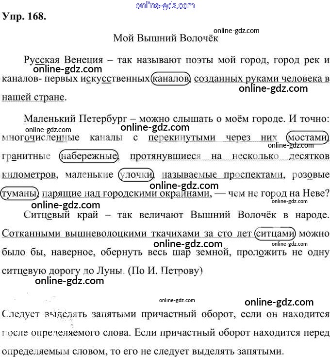Готовые домашние задания по Русскому языку за 7 класс Учебник Быстрова, Кибирева Инновационная школа 2019 - Упражнения Часть 1 168