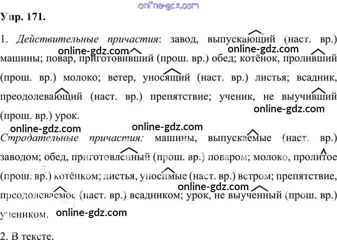 Готовые домашние задания по Русскому языку за 7 класс Учебник Быстрова, Кибирева Инновационная школа 2019 - Упражнения Часть 1 171