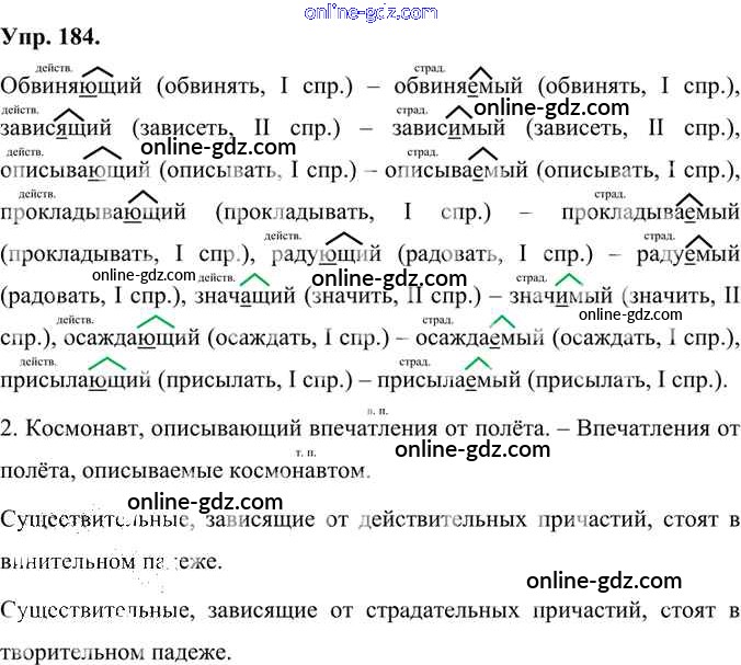 Готовые домашние задания по Русскому языку за 7 класс Учебник Быстрова, Кибирева Инновационная школа 2019 - Упражнения Часть 1 184