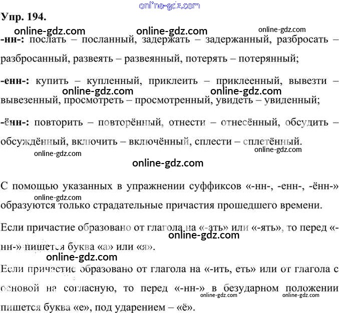 Готовые домашние задания по Русскому языку за 7 класс Учебник Быстрова, Кибирева Инновационная школа 2019 - Упражнения Часть 1 194