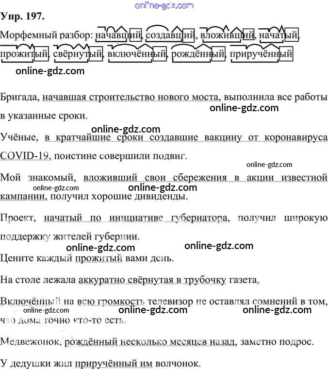 Готовые домашние задания по Русскому языку за 7 класс Учебник Быстрова, Кибирева Инновационная школа 2019 - Упражнения Часть 1 197