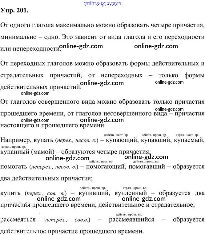 Готовые домашние задания по Русскому языку за 7 класс Учебник Быстрова, Кибирева Инновационная школа 2019 - Упражнения Часть 1 201