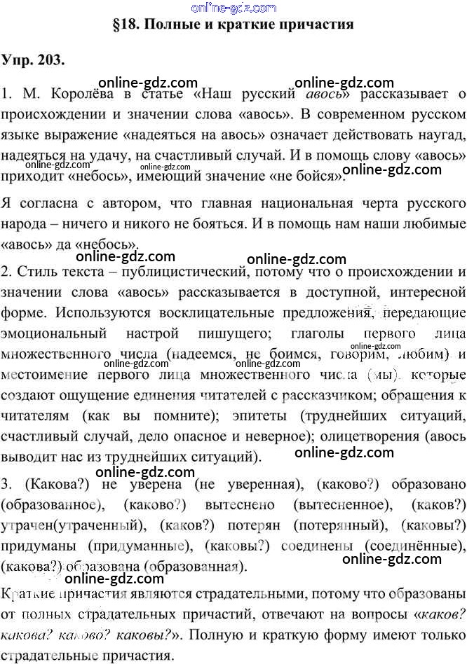 Готовые домашние задания по Русскому языку за 7 класс Учебник Быстрова, Кибирева Инновационная школа 2019 - Упражнения Часть 1 203