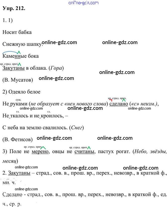 Готовые домашние задания по Русскому языку за 7 класс Учебник Быстрова, Кибирева Инновационная школа 2019 - Упражнения Часть 1 212