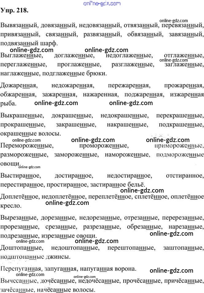 Готовые домашние задания по Русскому языку за 7 класс Учебник Быстрова, Кибирева Инновационная школа 2019 - Упражнения Часть 1 218