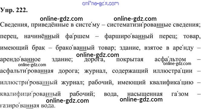 Готовые домашние задания по Русскому языку за 7 класс Учебник Быстрова, Кибирева Инновационная школа 2019 - Упражнения Часть 1 222