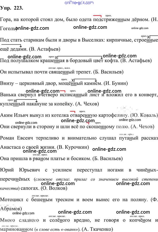 Готовые домашние задания по Русскому языку за 7 класс Учебник Быстрова, Кибирева Инновационная школа 2019 - Упражнения Часть 1 223