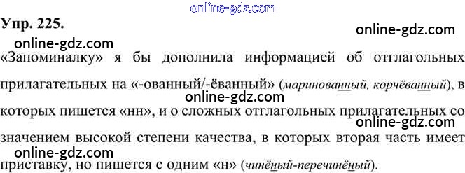 Готовые домашние задания по Русскому языку за 7 класс Учебник Быстрова, Кибирева Инновационная школа 2019 - Упражнения Часть 1 225