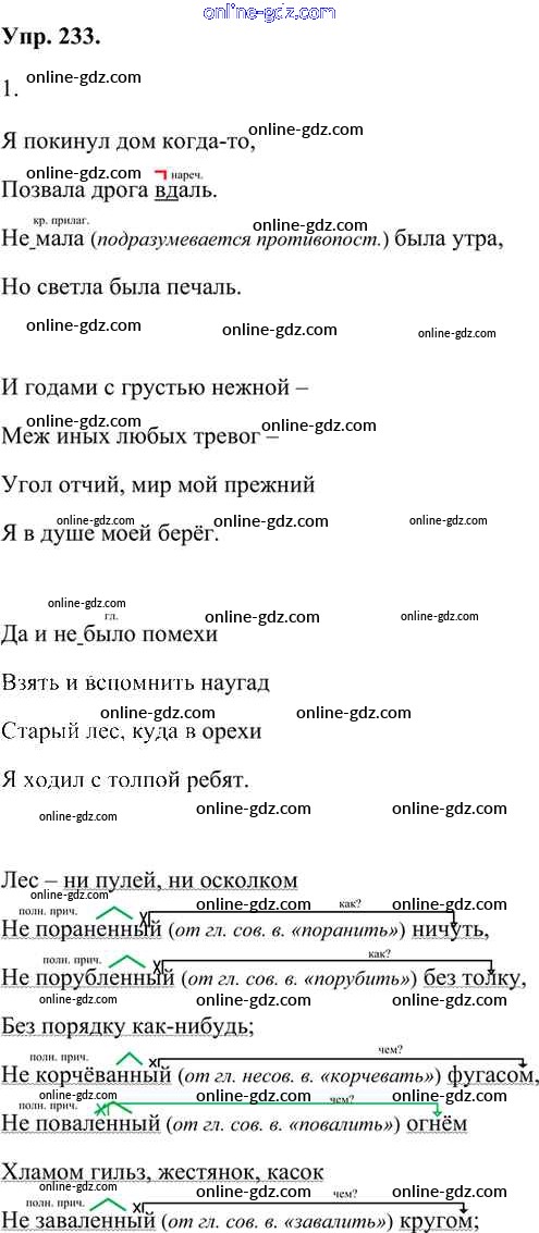 Готовые домашние задания по Русскому языку за 7 класс Учебник Быстрова, Кибирева Инновационная школа 2019 - Упражнения Часть 1 233