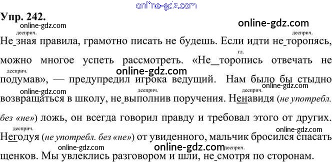 Готовые домашние задания по Русскому языку за 7 класс Учебник Быстрова, Кибирева Инновационная школа 2019 - Упражнения Часть 1 242