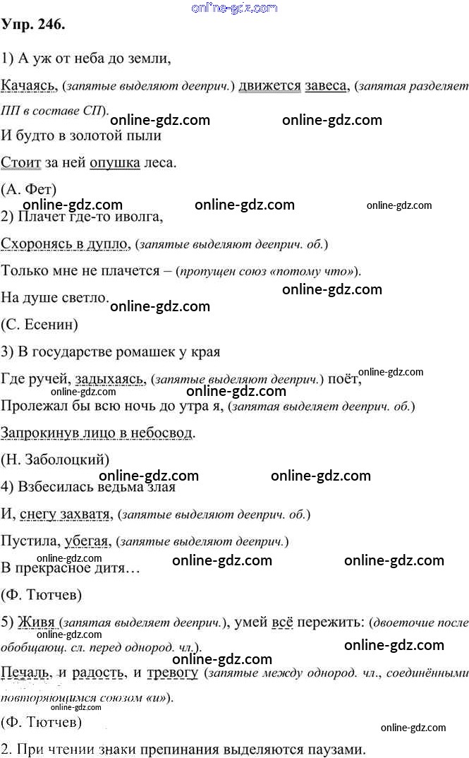 Готовые домашние задания по Русскому языку за 7 класс Учебник Быстрова, Кибирева Инновационная школа 2019 - Упражнения Часть 1 246