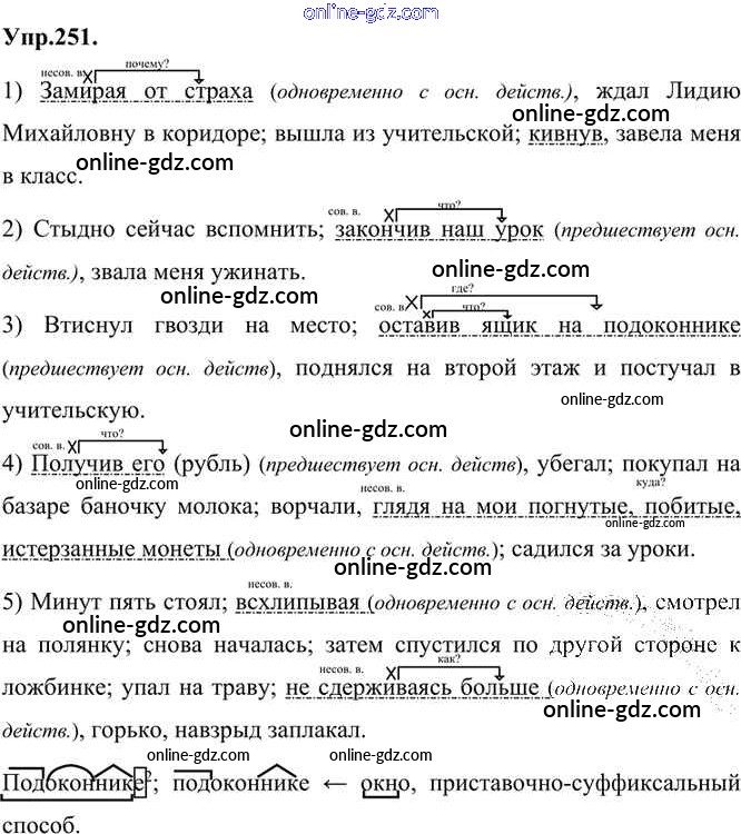 Готовые домашние задания по Русскому языку за 7 класс Учебник Быстрова, Кибирева Инновационная школа 2019 - Упражнения Часть 1 251