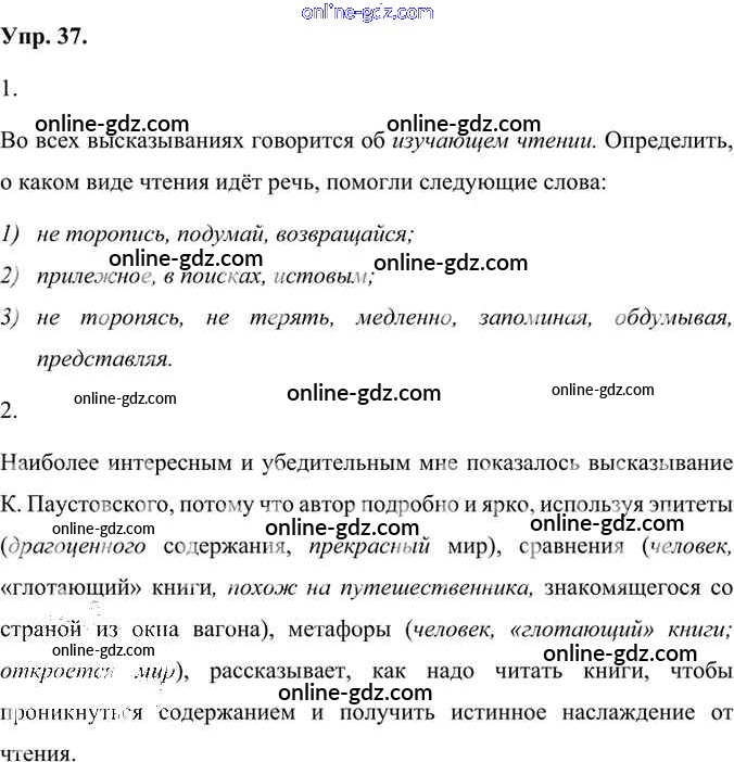Готовые домашние задания по Русскому языку за 7 класс Учебник Быстрова, Кибирева Инновационная школа 2019 - Упражнения Часть 1 37