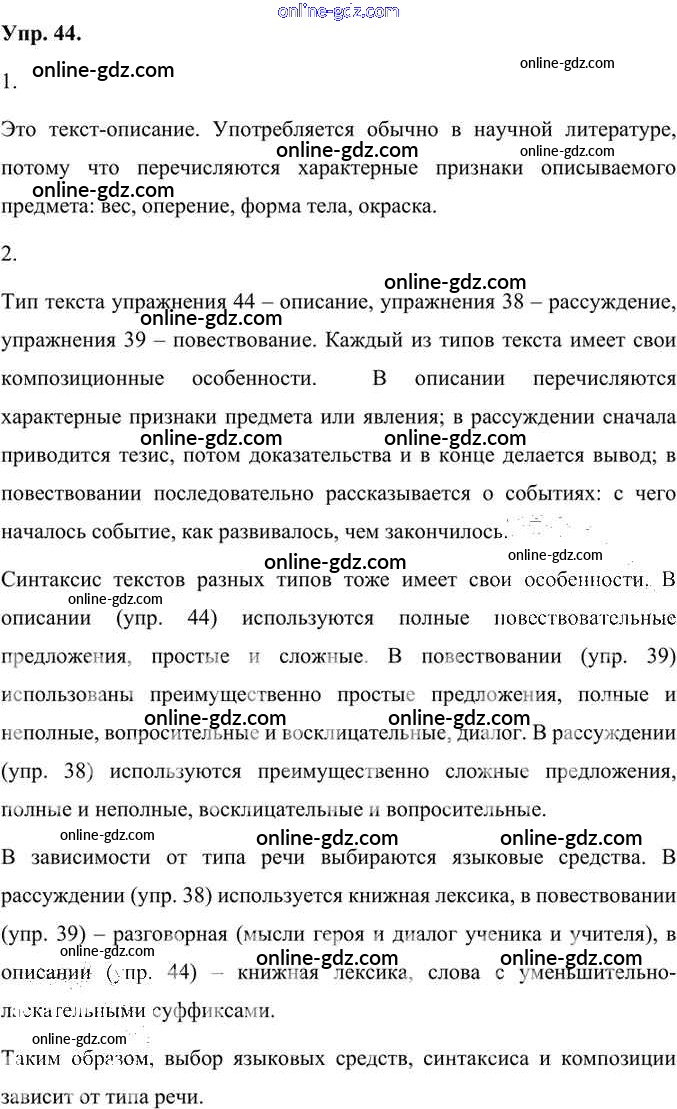Готовые домашние задания по Русскому языку за 7 класс Учебник Быстрова, Кибирева Инновационная школа 2019 - Упражнения Часть 1 44