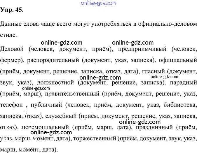 Готовые домашние задания по Русскому языку за 7 класс Учебник Быстрова, Кибирева Инновационная школа 2019 - Упражнения Часть 1 45