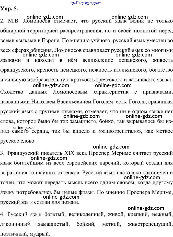 Готовые домашние задания по Русскому языку за 7 класс Учебник Быстрова, Кибирева Инновационная школа 2019 - Упражнения Часть 1 5